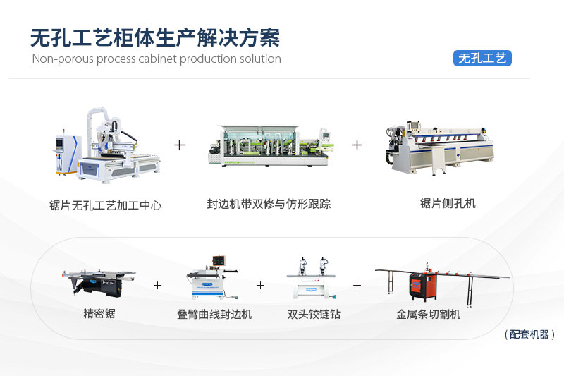 ?無孔工藝柜體生產(chǎn)解決方案無孔工藝柜體生產(chǎn)解決方案,主要由無孔工藝加工中心、鋸片側(cè)孔機、全自動封邊機三種設(shè)備組成,可用于加工生產(chǎn)板式家具、櫥柜、衣柜、兒童家具等柜體的生產(chǎn)加工,滿足家具生產(chǎn)廠家對無孔家具(使用隱形連接件連接)、板式家具(使用二合一、三合一連接件)及普通板式家具的加工需求。