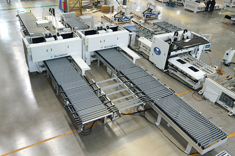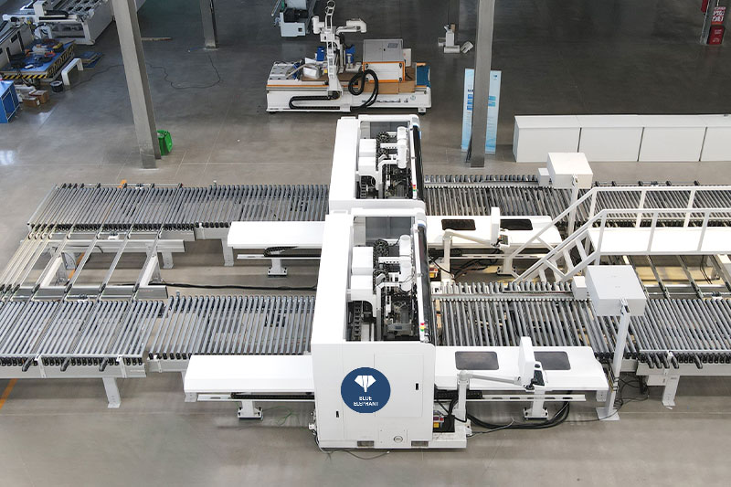 六面鉆雙機連線由兩臺數(shù)控六面鉆、定位機構(gòu)、高清讀碼器、自動輸送線及智能化控制系統(tǒng)組成,可與封邊機、開料設(shè)備組成自動化生產(chǎn)線。